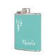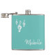 Trendy musical flask, with a treble clef pattern and white script typography. Set on a teal green background, this item has customizable lettering where your can add your own text. A fun music inspired item to celebrate in style.