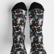 A Colourful Musical Pair Of Girls Crew Socks Designed With Unicorns, Rainbows And Guitars On Black