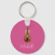 MusicL keychain with a violin image on a bright pink background. With elegant white lettering, you can customize with your own text. Great for adding a musical touch to this fun gift item.