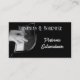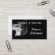 This elegant, black and white music themed business card showcases a person's hands on a grand piano with plenty of space to add your name and tag line, quote, or company name. The back of the card includes a QR code to direct people to your website. Photography and design ©Vann-Horn Creative Photo & Designs.