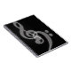 Un carnet à thème de musique simple noir/blanc classe - treble blanc et clés de basse contre un arrière - plan noir texturé. Parfait pour vos notes musicales !