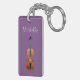 Porte - clé de musique monogramme, avec une image de violon posée sur un arrière - plan violet. Avec le lettrage blanc, vous pouvez vous customiser avec votre propre texte. Bon appétit !