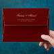 Muslim Wedding Invitation Return Address Envelope. Vintage damask pattern in gold colour with a burgundy red colour on the outside. There is a traditional script font. Use the personalize option to edit the names and address.