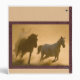 A cowboy rounds up wild mustangs. The dust swirls around the thundering hooves and creates a diffused scene. Pastel art by award winning wildlife artist Kathie Miller.