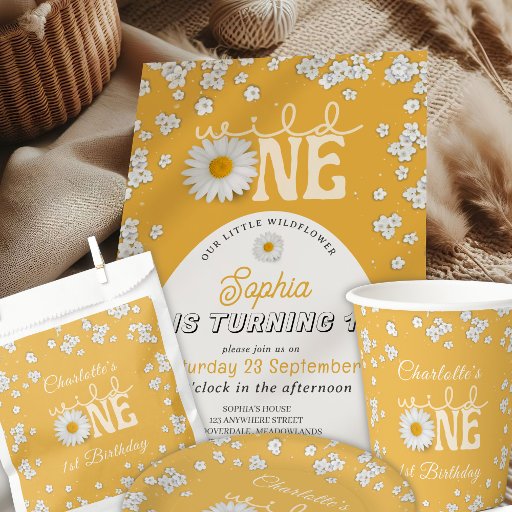 Mustard Daisy Wild One 1st Birthday 1 Inch Round Button