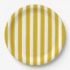 Mustard Yellow and White Vertical Stripes Paper Plate