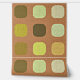 This design features a modern textured geometric motif with mustard yellow, chartreuse brown, ochre, and dark olive green red rounded squares on a rust terracotta coloured backdrop. The pattern is both ornate and elegant, exuding a funky hipster essence. It's a sophisticated and chic design that represents eclectic minimalism, ideal for artistic interior designers, home decor lovers, trendsetters, and aficionados of vintage, retro, or abstract digital geometric patterns. This ornate yet trendy hipster pattern is versatile and offered on a range of contemporary home decor products, suitable for enhancing the atmosphere of various spaces like master bedrooms, kitchens, living rooms, man caves, college dormitories, condominiums, studios, or apartments.