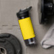 Bold and bright with contemporary simplicity, this custom mustard yellow water bottle design has modern typography spelling out your monogram initials in black lower case type face with your name in all caps in a smaller font size placed below your monogram for a professional contemporary look. Take along this attractive personalized water bottle wherever you go! It is a great way to compliment your personal business branding.