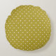Mustard yellow white polka dots pattern Round Pillow