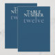 A soft muted blue background and dusty light blue tones set the stage for this elegant table number card, featuring bold, classic serif typography in a modern, easy-to-read layout. Whether for a garden wedding, minimalist house plant celebration, or contemporary event, its simple and refined style seamlessly complements modern table decor and sophisticated setups alike. The elegant serif type and understated design bring bold sophistication and minimalist charm, ensuring each seating card blends perfectly into stylish or natural-inspired wedding settings.