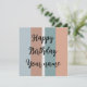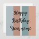 Cool, modern grey and light brown coloured stripes pattern and text; Happy Birthday with a name template.
