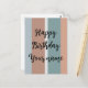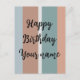 Cool, modern grey and light brown coloured stripes pattern and text; Happy Birthday with a name template.