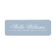Elegant return address labels with your name in an elegant calligraphy script font and the address below on a light muted blue gray background.