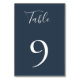 Trendy muted navy blue, solid colour table number card, designed to match our Navy Coral Botanical Collection.