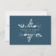 Simple muted navy blue wedding RSVP cards, with foliage accent frame backing, and food allergy note. Personalize text font style, colour, and size.
