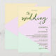 Wedding collection with muted pastel mint, yellow and purple background with olive green text