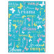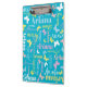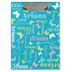 Cute little graphic outline butterflies personalized clipboard. This muted aqua, soft blue, pink, green, yellow and coral text typographical bag can also be customized with your own short name, currently reads Ariana. Other names and colours available or contact me for name requests. Original art and design by Sarah Trett for www.mylittleeden.com