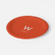 Trendy personal party paper plates featuring muted red background, large centred monogram and associated name. Clean, simple minimalist typography. Fully personalizable.