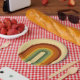 Muted Retro Groovy Layered Rainbow Round Paper Plate