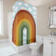 Retro rainbow design. Rainbow layers in muted colours, orange, red and green. Groovy retro rainbow gifts, home decor. Retro rainbow seventies shower curtain