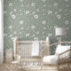 Muted Sage Green And White Wildflower Pattern Wallpaper