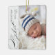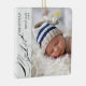 My First Christmas photo ornament with vertical photo, elegant calligraphy and delicate white snowflakes on a silver grey border. The photo template is ready for you to add your photo, baby's name, the year and your custom text on the back. With the exception of the handwritten text used for My 1st First Christmas, all of the wording is fully editable so you can add birth stats or other custom text. If you have any problems with placement, try cropping your pic to a portrait format and re-uploading