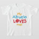 My Abuelo Loves Me T-shirts, cards, stickers, bodysuits bags, and more with colourful red, yellow, and blue text and heart design. These My Abuelo Loves me apparel and gift items will make abuelo smile!
