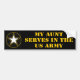 "Looking for that one of a kind Army bumper sticker? We've got it! Grab your "My Aunt Serves In The Army" bumper sticker today! Design features a unique Army Star with gold text on a jet black background."
