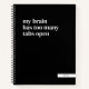Personalized "My Brain Has Too Many Tabs Open" Spiral Notebook in black with white print.