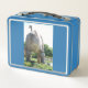 This is a standard metal lunchbox that appears to work just fine. We designed this box ourselves with an uploaded photo and custom text on the front and back. It looks absolutely beautiful except the front of the lunchbox is not centered like it shows in the photo. The print borders don't align with the inset flat part of the box where the preview photo online showed it perfectly centered in there. The back looks nice and centered though.