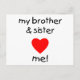 Show everyone your brother & sister love you with this my brother & sister love me design in the ever popular My brother & sister (heart) me style.
