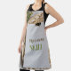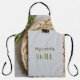 This is a really nice apron with a print all over it. It's big, 27"x34”, and it says “My Cooking Skills.”