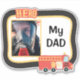 This photo template firefighter hero sticker has a place for your own photograph under the red and gold text that says "HERO". At the right is your custom text in black, and below the text is a red fire truck image. Everything is framed in black and gold. Make it say whatever you'd like!
