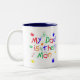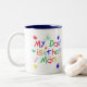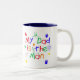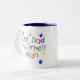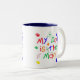 This adorable coffee mug will be treasured by the kids' Dad for Father's Day or birthday or any other celebration. It says "My Dad is the man" and has childish like drawings and hand prints all over. It's bold and colourful in red, blue, green and orange.  You can leave the inside of the cup navy blue or change it to any one of the other coordinating colours.