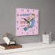 This clock is so cute! Loved that I could personalize it with my daughter’s name. She just got her big girl bed so we decorated with unicorns. I thought this would be good to have in her room. We are using it to help her learn how to tell time. She absolutely loves it! The color was just like the design on the website. Everything turned out just as I expected.