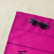 The My Dog Wouldn't Allow It Beach Towel features text that says "I'd go...but my dog wouldn't allow it." with a paw print and dog silhouette embellishment against a magenta wooden background. Additional gift items available with this design as well.