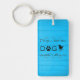 A funny keychain for those who prefer stay home with their dog instead of going out.  Keychain design features text that says "I'd go...but my dog wouldn't allow it."  with a paw print and dog silhouette embellishment against a blue wooden background. Additional gift items available with this design as well.