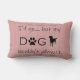Add a cute touch to any room with this lumbar pillow perfect for those who would prefer to stay home with their dog instead of going out. Lumbar pillow design features text that says "I'd go...but my dog wouldn't allow it." with a paw print and dog silhouette embellishment against a pink wooden background. Additional gift items available with this design as well.