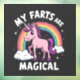 magical farts, unicorn humour, funny rainbow unicorn, fart jokes, whimsical unicorn, funny pun, unicorn fart, rainbow humour, magical unicorn, fart humour, quirky design, magical fun, unicorn lovers, funny fart joke, humourous design.