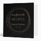 This is My Favourite Recipes Binder. Black background with a gold circle and custom lines of text... nice idea for your favourite recipes, or any other subject... for your special chef