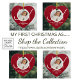 This stylish heart-shaped My First Christmas as Grandma Photo Ornament is decorated with the word "JOY" on a red background.