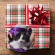 You got a new cat! Or your friend got a new cat. Mark this year with a My first Christmas with (sample name) ornament. Your photo of the cat on one side. Customizable details on reverse. Purple background shown. My First Christmas with (Sample Name). Send to Your friend as a Christmas Card and she can hang it on her tree with pretty ribbon.