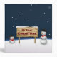 Winterly graphic illustration featuring two cute snowmen holding a wooden sign in a snowy environment. Customize this product with your own text and picture.