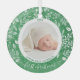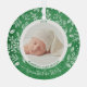 Round glass Christmas tree ornament features your favourite photo surrounded with white leaves, berries and dots on a textured green background. TIP: Upload a high resolution photo that features your baby in the middle - you can crop to a square, too. Ornaments make memorable gifts for family and friends or create for yourself. MORE colours and DESIGNS in our store.