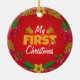 Celebrate the joyous arrival of your little one with our "My First Christmas Red Custom Baby Photo and Name Ceramic Ornament." This modern and elegant ornament is the perfect keepsake to commemorate your baby girl's inaugural Christmas season.