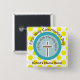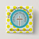 My First Holy Communion Buton, Customizable with child's name. Yellow polka dots with teal centre and cross.