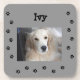 Get your fur baby on these awesome coasters. These coasters have been personalized so you can put your dog's photo and name on it. Just switch their photo and name with ours. We made the border of the coaster in paw prints. Paw prints going upward on one side and downward on the other side. Paw prints running across the bottom. You also have the choice of changing the background colour. Match it to your home decor. Get yours today!