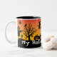 halloween backrgound with scarecrow, spooky pumpkins and a witch
