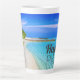 Have some coffee and go to your happy place with this beautiful latte mug. The design features a tropical beach with crystal clear blue water and a warm blue sky overhead. The text reads "My Happy Place" in a trendy white font. Makes a perfect gift for a friend or a loved one, or keep it for yourself.