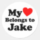 My Heart Belongs to Jake Classic Round Sticker